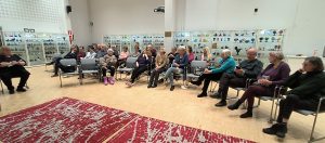 Joukko 30–50-luvulla syntyneitä saviniemeläisiä kertoili lapsuusmuistojaan kirjaston Kasper-salissa täyden salin kuunnellessa kiinnostuneena.