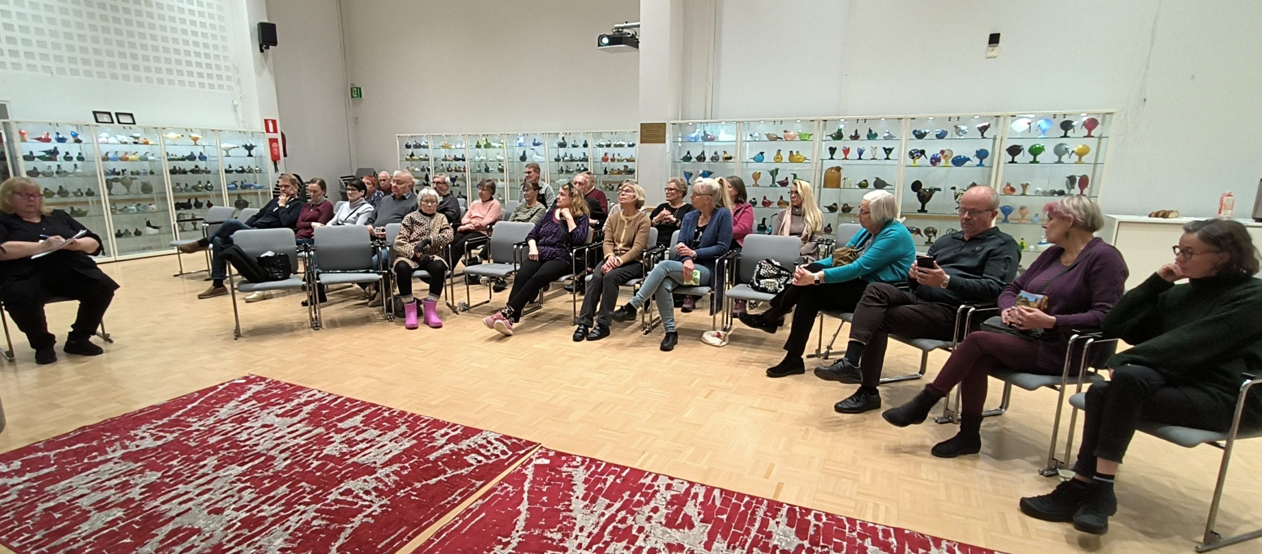 Tarja Uusitalo kertoili Saviniemen muistoja ja muistikuvia. Kiinnostava aihe veti Kaspersaliin 29 kiinnostunutta. Tällaisille tarinailloille toivottiin myös jatkoa tulevaisuudessakin.